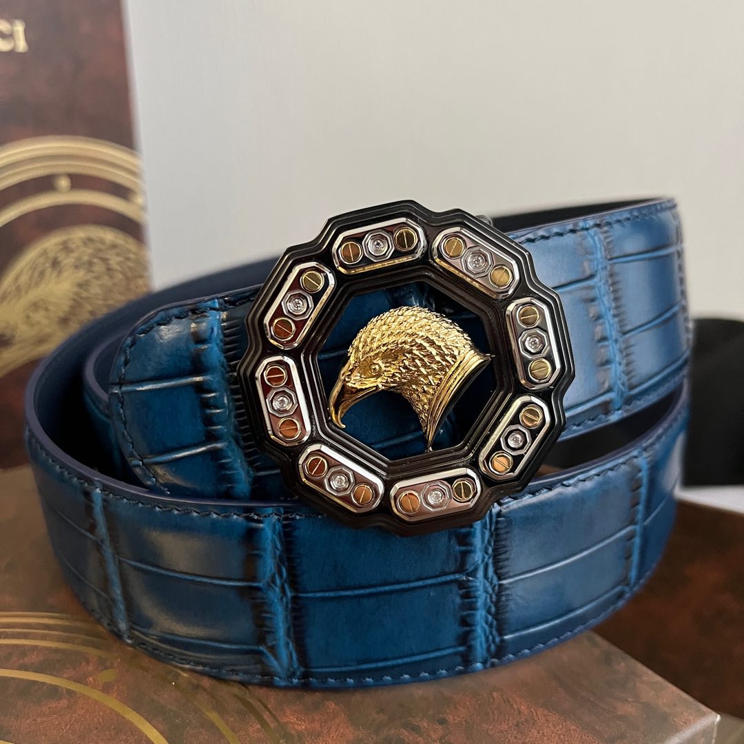 This limited-edition Octagonal Eagle Head belt features the brand's exclusive two-tone inlay technique, breaking away from the traditional gold and silver color schemes and presenting a two-tone luster of stainless steel, dazzling yet understated.