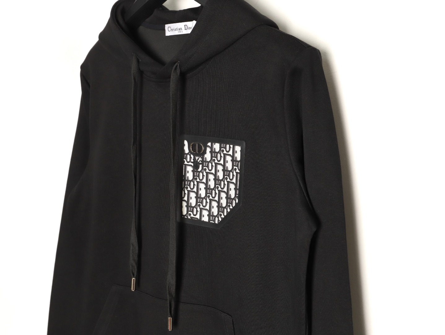 A sleek piece from the Dior Autumn/Winter 25 collection, this monogram jacquard faux pocket hooded sweatshirt is centered around "comfortable fabrics + ingenious design," cleverly blending the brand's classic monogram design with practical functionality. While providing warmth and comfort for everyday wear, the unique pocket design creates a visual focal point, effortlessly showcasing high-end style in casual outfits and adapting to a variety of lifestyle scenarios.