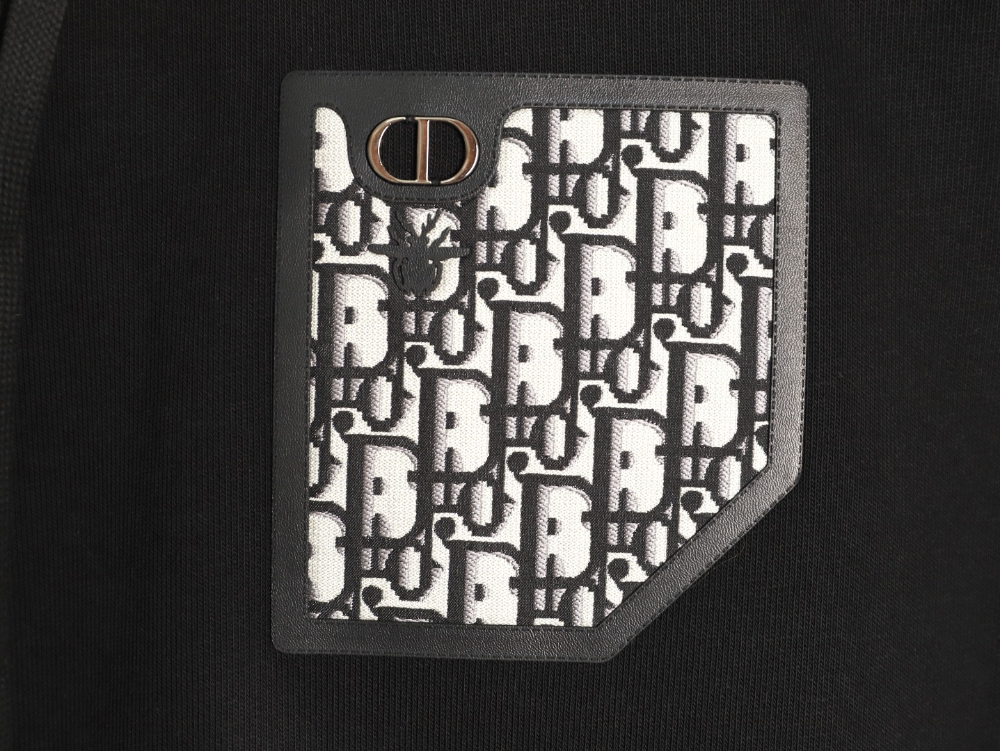 The sweatshirt's most striking feature is the meticulously crafted irregular slant pockets, which break with the traditional symmetry of pockets and become the visual centerpiece of the garment with their unique angle. Made from high-quality leather, the slant pockets boast a delicate, lustrous surface and a firm, resilient feel, creating a striking textural contrast with the sweatshirt's cotton fabric. The ingenious material combination showcases the craftsmanship. Even more noteworthy is the custom hand-sewn CD hardware. The hardware is rich in gloss, and the CD lettering is clearly and neatly engraved, without any fuzzy edges. The hand-sewing process ensures that the accessories are secure and will not fall off, instantly enhancing the exquisite look. Furthermore, the oversized, three-dimensional slant pockets provide practical storage for essentials like phones and keys, while also allowing for casual pocketing, balancing aesthetics with practicality. V. Sizing and Fitting: Suitable for a variety of body shapes, versatile and easy to style.