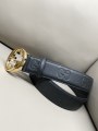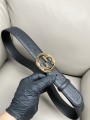 This classic GUCCI double-sided belt is crafted from the brand's signature Gucci Signature heat-embossed leather. Made from imported top-grain cowhide, it boasts a thick, crisp, and smooth feel. The distinctive, three-dimensional print creates a rich, textured look. The interlocking G metal buckle exudes the brand's understated luxury.