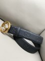 This classic GUCCI double-sided belt is crafted from the brand's signature Gucci Signature heat-embossed leather. Made from imported top-grain cowhide, it boasts a thick, crisp, and smooth feel. The distinctive, three-dimensional print creates a rich, textured look. The interlocking G metal buckle exudes the brand's understated luxury.