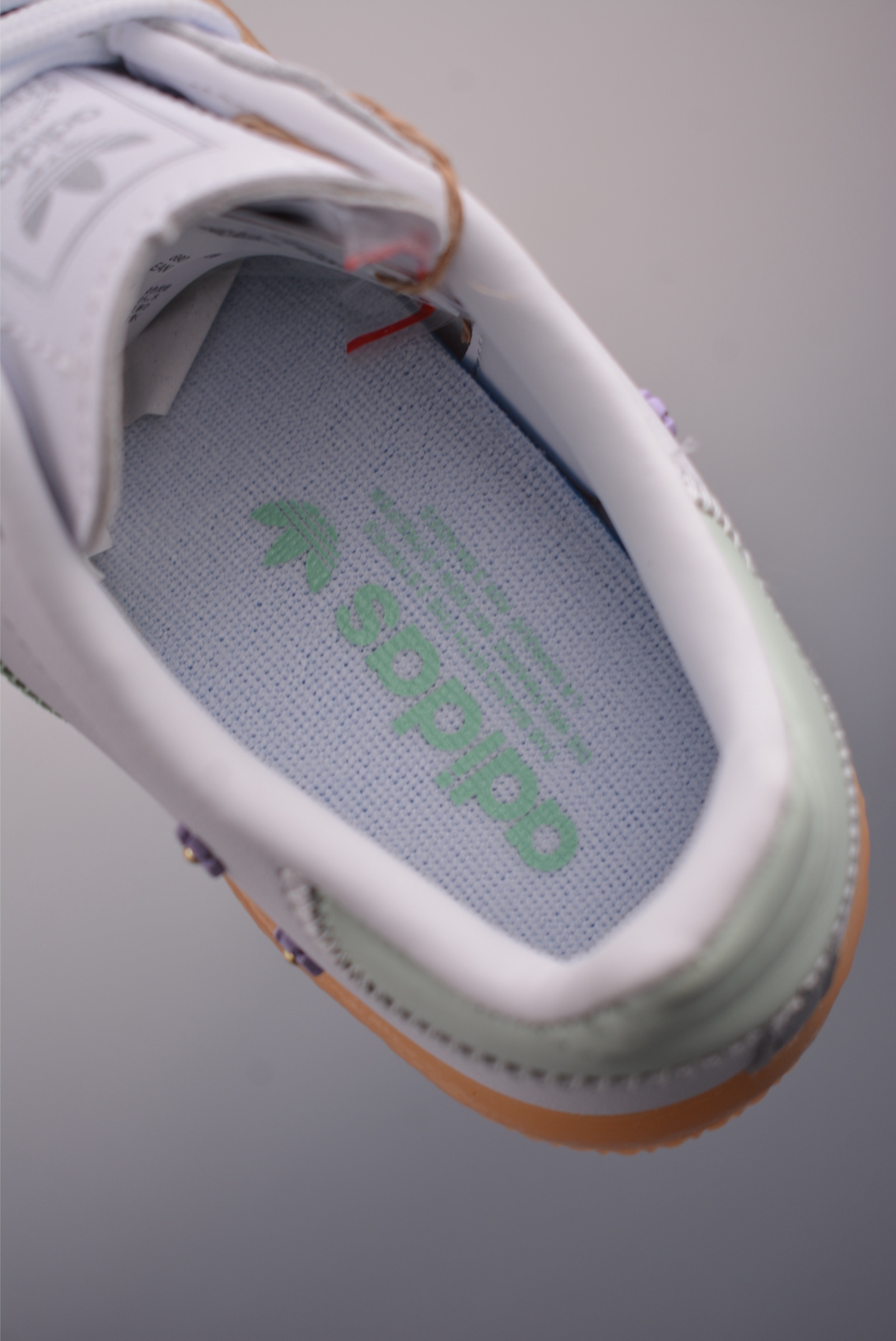The adidas SAMBA VALENTNE White and Green Floral version, a fresh take on the classic Samba, perfectly combines traditional design elements with a modern, casual style. The upper is crafted from a combination of high-quality materials, and the intricate stitching and sewing techniques showcase the meticulous craftsmanship, ensuring each pair is a masterpiece of craftsmanship.