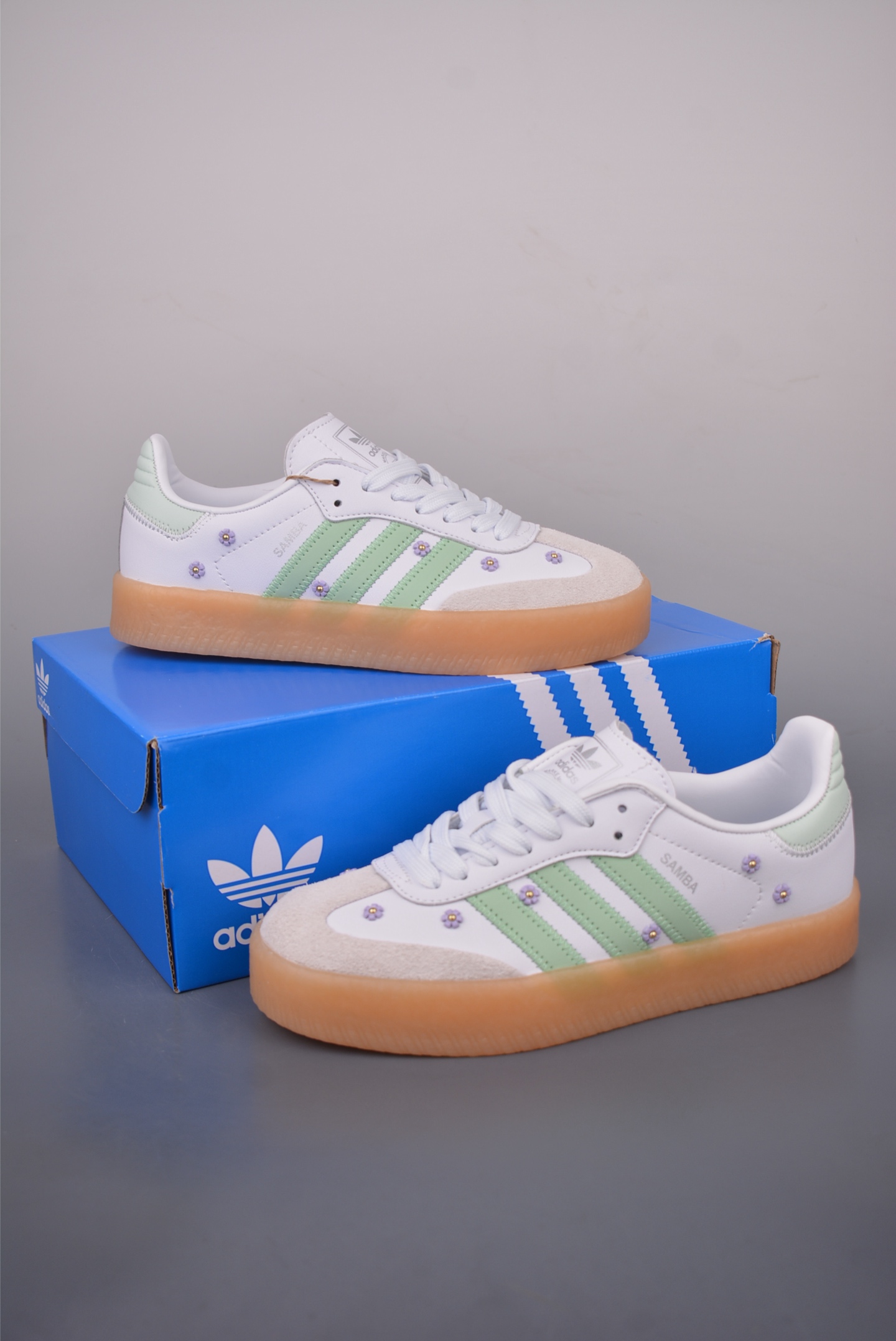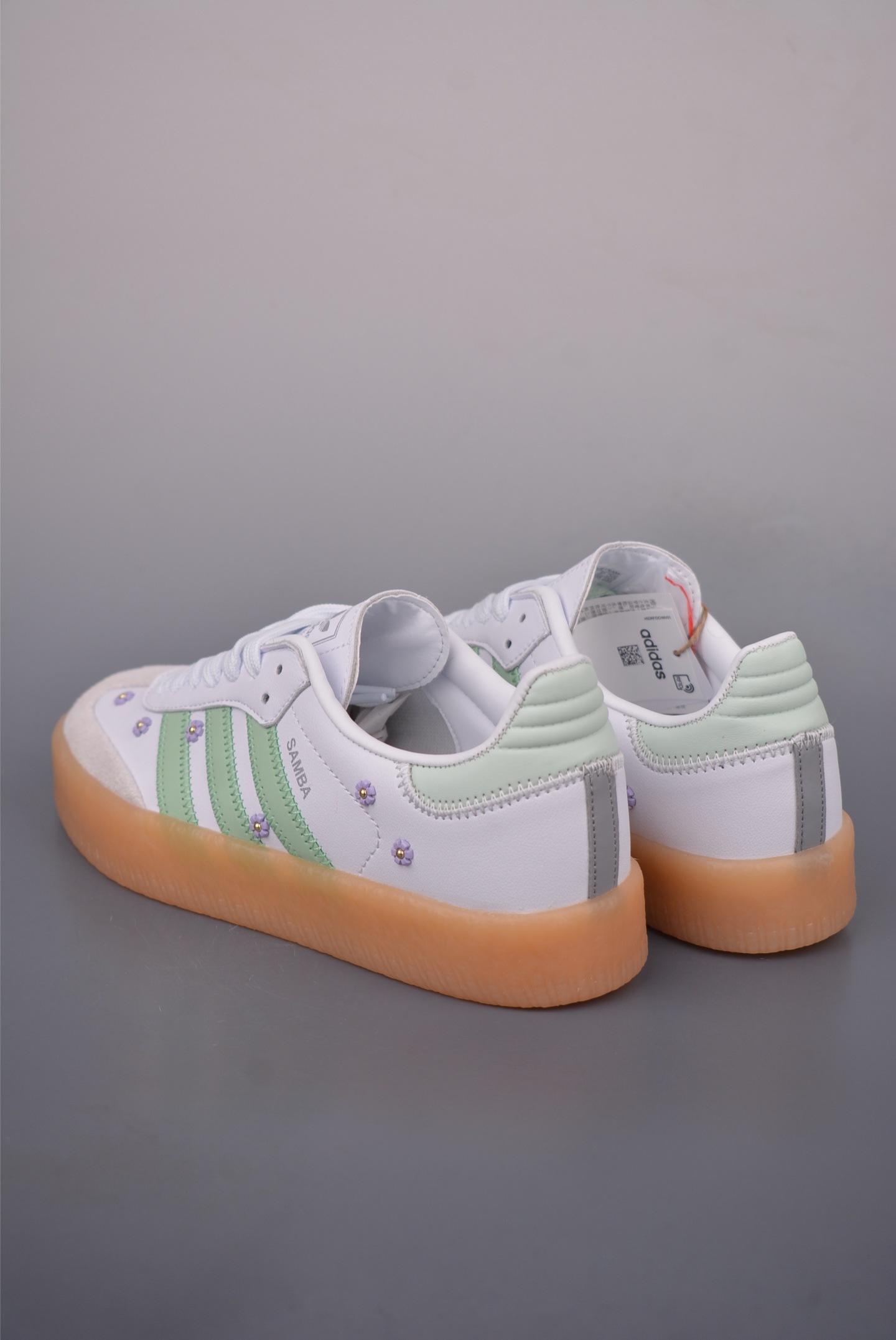 Adidas SAMBA VALENTNE White and Green Floral Thick-Sole Casual Sneakers - Original Version