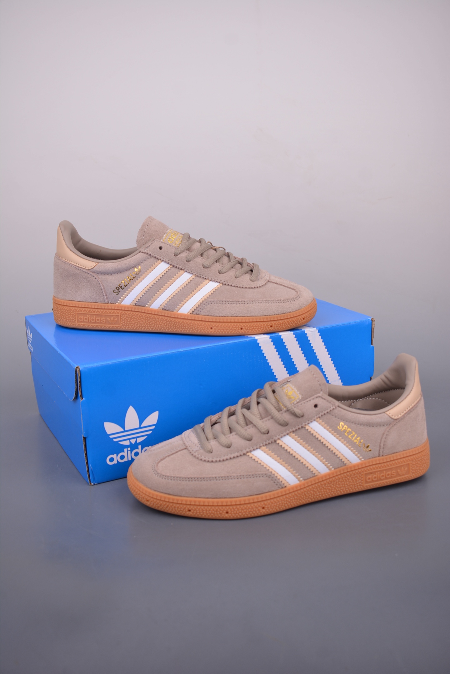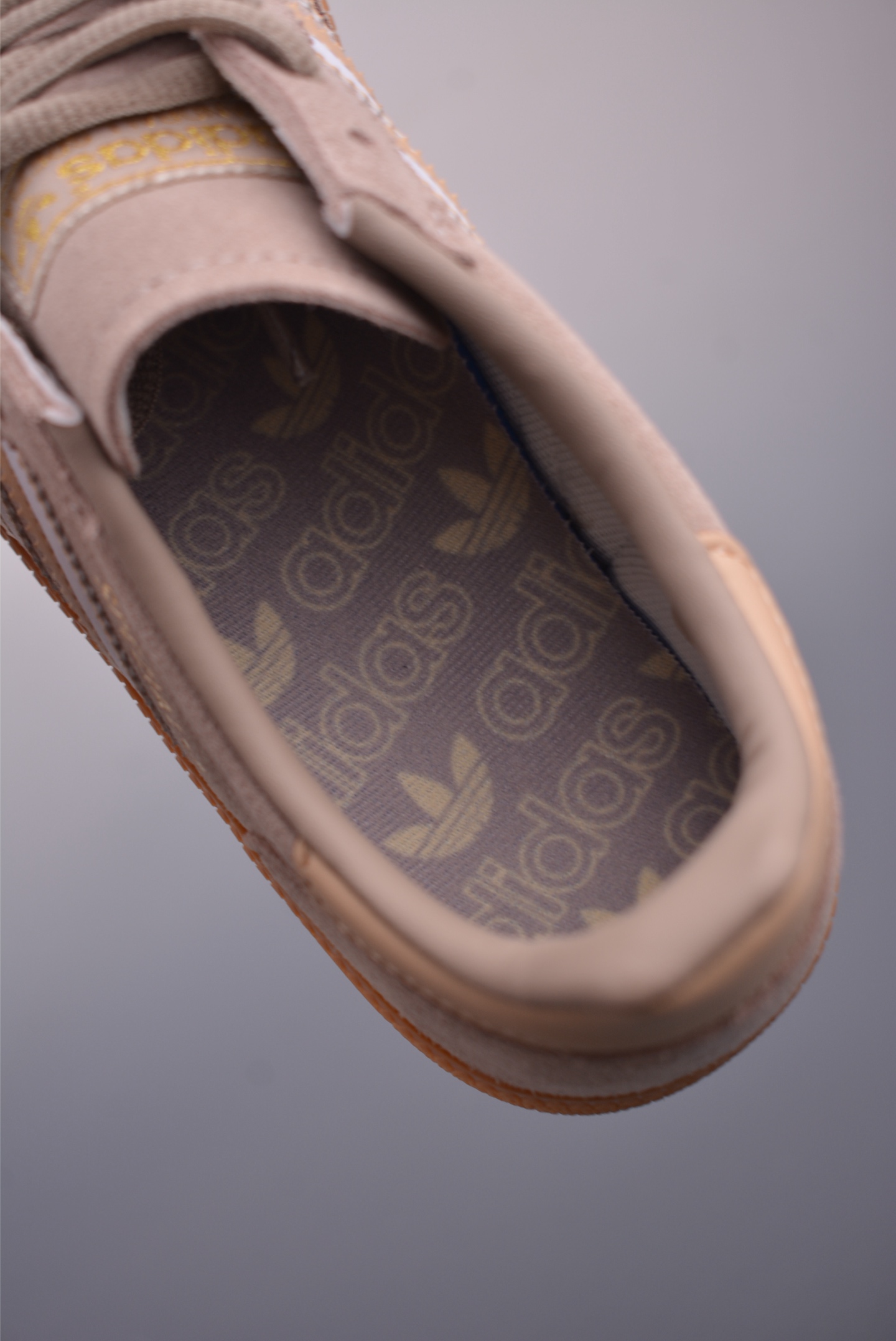 The iconic Adidas Three Stripes and the classic Trefoil logo are embellished on both sides of the upper, highlighting the brand's unique identity and cultural heritage. Every detail highlights Adidas' sporting spirit and classic design, creating a rich retro vibe.