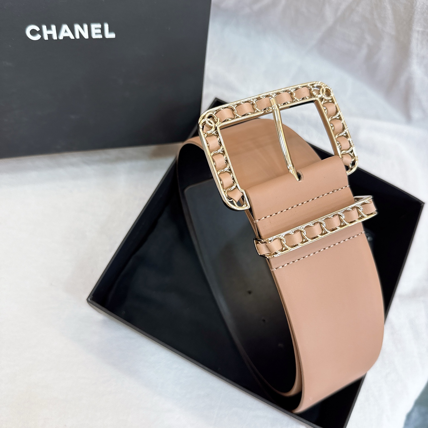 This special edition wide Chanel belt is inspired by the brand's classic craftsmanship, crafted from imported top-grain calfskin and brass. The unique braided leather craftsmanship paired with a vintage pin buckle creates a rich, textured look, showcasing luxurious details. The wide design is stylish and elegant, creating a striking three-dimensional effect that instantly elevates and enhances your overall look.