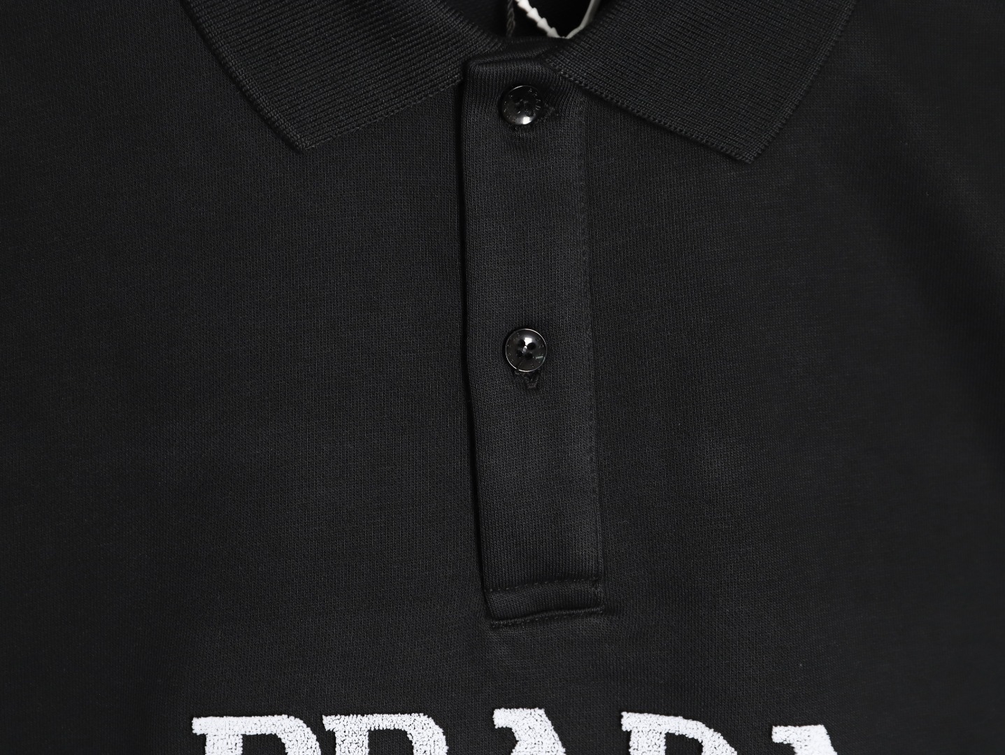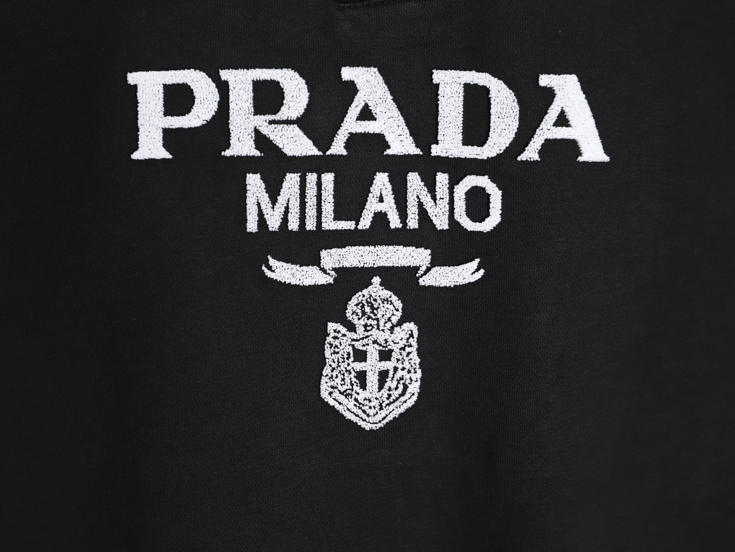 A premium piece from Prada's Fall/Winter 25 collection, this towel-embroidered logo lapel sweatshirt is crafted from heavyweight cotton fabric and meticulously crafted with embroidery, adhering to luxury standards from raw material selection to meticulous detailing. The 480g heavyweight fabric lends the sweatshirt a sturdy feel, while the towel-embroidered logo and contrasting micro-label highlight the brand's distinctive identity. The lapel design offers a casual yet sophisticated aesthetic, perfect for a variety of outfits, making it a must-have for both comfort and style in the fall and winter seasons. 1. Core Fabric: 480g Pure Cotton Double-yarn Fish-Scale Terry, Superior Texture and Craftsmanship