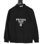 Ribbed Knit Collar, Sleeves, and Hem: The collar, cuffs, and hem are all knitted with ribbed knit. Ribbed knit offers excellent elasticity and resilience, fitting snugly around the neck, wrists, and waist, preventing wind from entering and enhancing warmth. Furthermore, the ribbed material resists loosening and deformation, ensuring a well-shaped fit over extended wear, preventing collar flaps and cuffs from sliding down, ensuring a perfect balance of practicality and aesthetics. Double-needle cross-stitching: All seams on this sweatshirt are double-needle cross-stitched. The fine, regular double-stitching not only adds a refined look but also significantly increases the seam's tensile strength, making it less susceptible to unraveling or tearing during daily wear. This durable, detailed design showcases Prada's unwavering commitment to quality.
