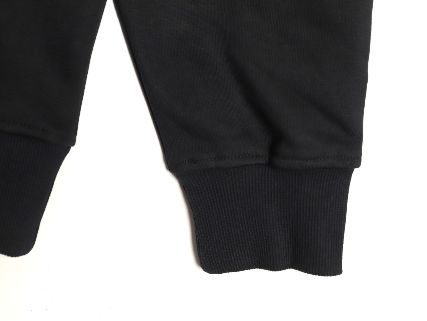 The body is crafted from 480g pure cotton double-yarn fish-scale terry fabric. The heavyweight imparts exceptional stiffness and thickness, allowing for a distinctly sturdy feel. The fabric's solid texture is easily felt, preventing it from sagging or warping, perfectly supporting the sweatshirt's sleek silhouette and avoiding the risk of a lightweight sweatshirt looking cheap. The double-yarn process creates a denser, more regular texture, resulting in a delicate and soft touch. This also enhances the fabric's durability, preventing pilling and snagging over time, extending its lifespan. The fish-scale terry structure creates a unique textured feel on the surface, adding a premium look. It also offers excellent breathability and warmth, making it suitable for wearing alone in autumn and winter without feeling stuffy, and can be layered underneath to keep skin dry and cool. The fabric undergoes multiple meticulous treatments: a dust-free singeing process on the front thoroughly removes loose lint, leaving the sweatshirt clean and smooth for a smoother touch. A hair-absorbing treatment on the bottom further optimizes the fabric's inner texture, ensuring it wears directly against the skin without any roughness or itching. Environmentally friendly active dyeing ensures rich, even color. Both gray and black are Prada's signature hues, with excellent color fastness, maintaining their vibrant hues even after multiple washes and resisting fading and color transfer, achieving a balance between aesthetics and environmental friendliness.