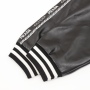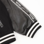 Additionally, the fabric patchwork adds a touch of modern flair to the jacket. The precise cutting and splicing of different textures creates a rich visual dimension and cleverly divides the body, elevating the basic baseball jacket from monotony and showcasing ingenuity. The embroidered triangle logo further enhances the brand's identity. 3. Details and Accessories: Exquisitely crafted, showcasing a luxurious aesthetic.