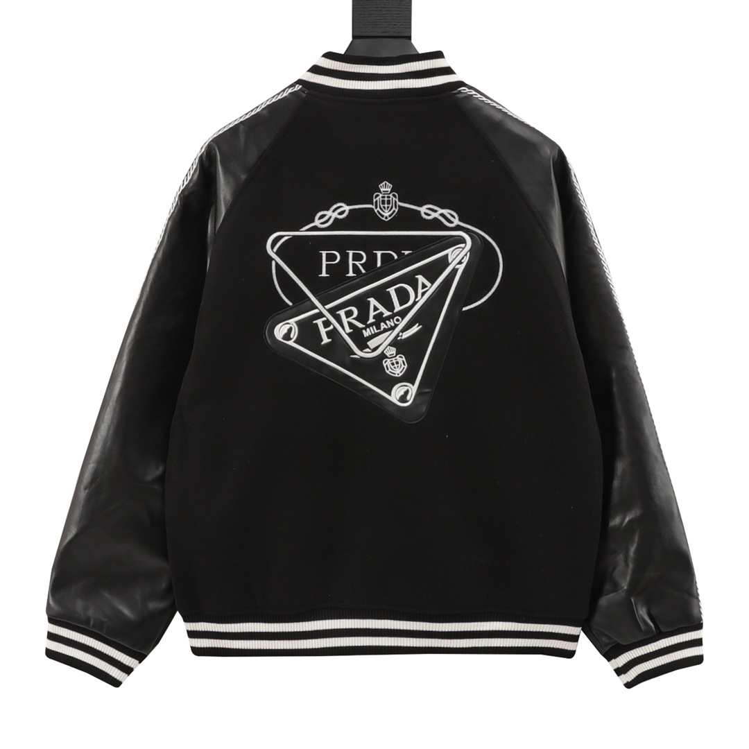 The visual centerpiece of the jacket is the iconic Prada triangle logo embroidery, crafted with high-quality thread and meticulous craftsmanship. The color of the thread harmonizes with the base fabric, clearly highlighting the brand identity without appearing overly garish or ostentatious. The stitching is meticulously detailed, with smooth, clean lines and no imperfections such as skipped stitches or frayed edges. The triangle logo is richly contoured, and the distinct embroidery texture is felt when touched, instantly enhancing the jacket's recognizability and becoming the finishing touch, easily distinguishing it from ordinary baseball uniforms and showcasing the wearer's stylish taste. V. Care and Sizing: Friendly Tips to Fit Various Body Shapes