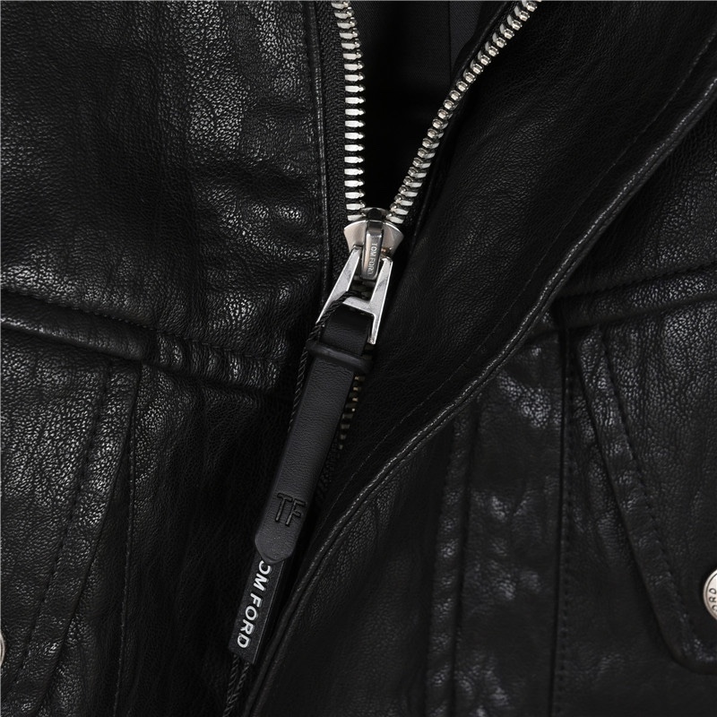 Every detail is meticulously crafted by Tom Ford. The luxurious hardware, crafted with elegance and refinement, not only enhances the overall style but also adds a touch of class to this leather jacket. Each button and zipper is crafted from high-end metal, offering a smooth, lustrous finish and elevating the brand's luxurious character.