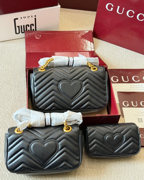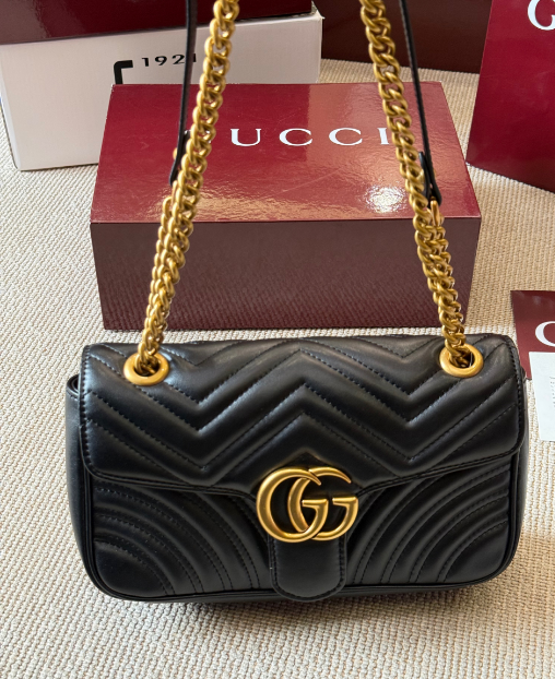 Whether carried over the shoulder or crossbody, it effortlessly complements any outfit, adding a touch of stylish flair. The delicate chain shoulder strap and flap design add both design and practicality. A must-have for the modern woman, this GUCCI GG Marmont bag will become a timeless classic in your wardrobe.