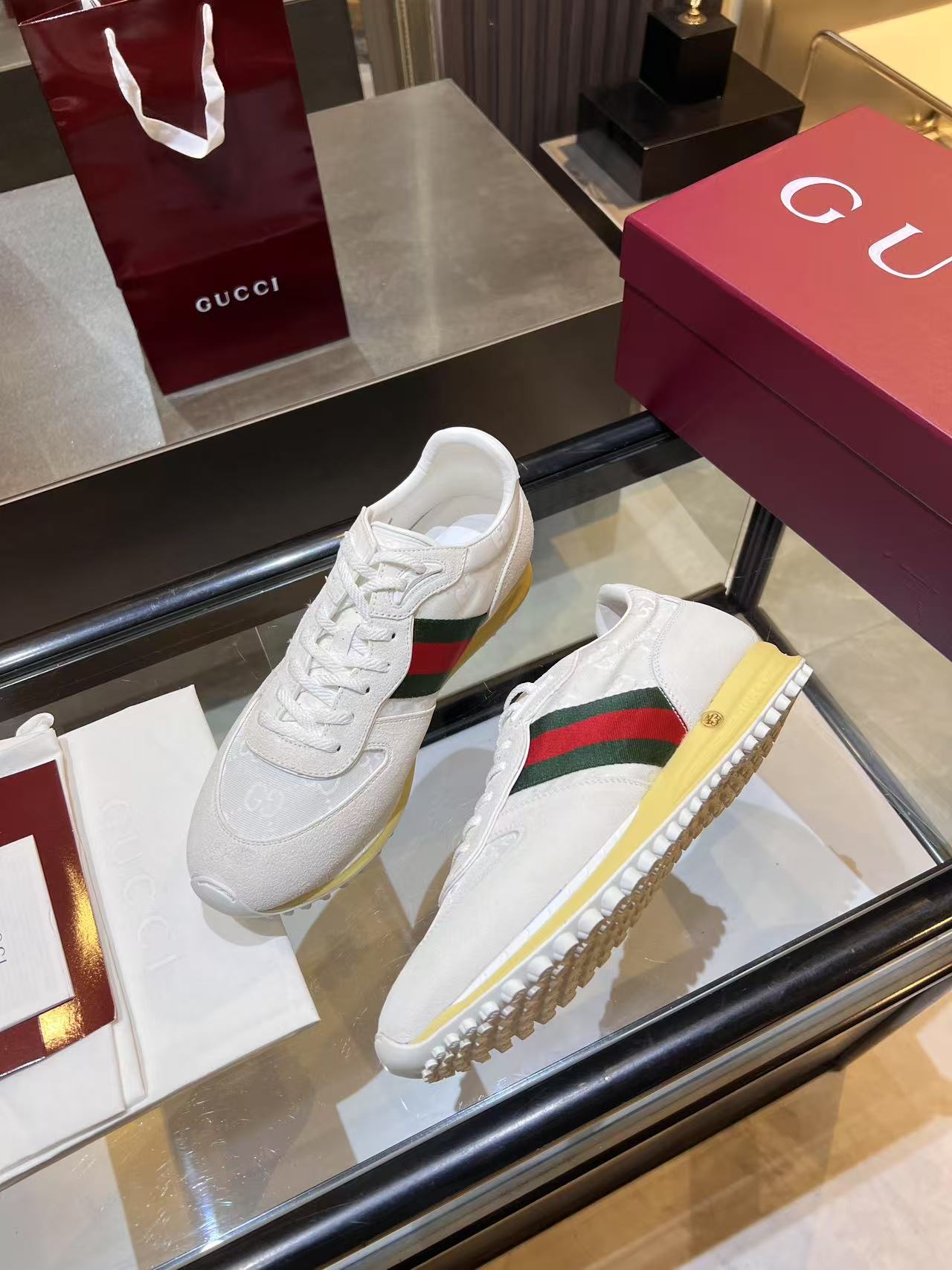 Gucci shoes are renowned for their distinctive designs and high-quality craftsmanship, blending fashion and luxury. The brand's diverse shoe offerings, including casual, formal, and athletic styles, often feature vibrant colors and the iconic Double G motif, showcasing a bold and individual style. Gucci's attention to detail culminates in shoes made from premium materials such as fine leather and fabrics, ensuring both comfort and durability. Whether paired with everyday attire or formal occasions, Gucci shoes add a unique touch of glamour to any outfit, making them a favorite among fashion enthusiasts.