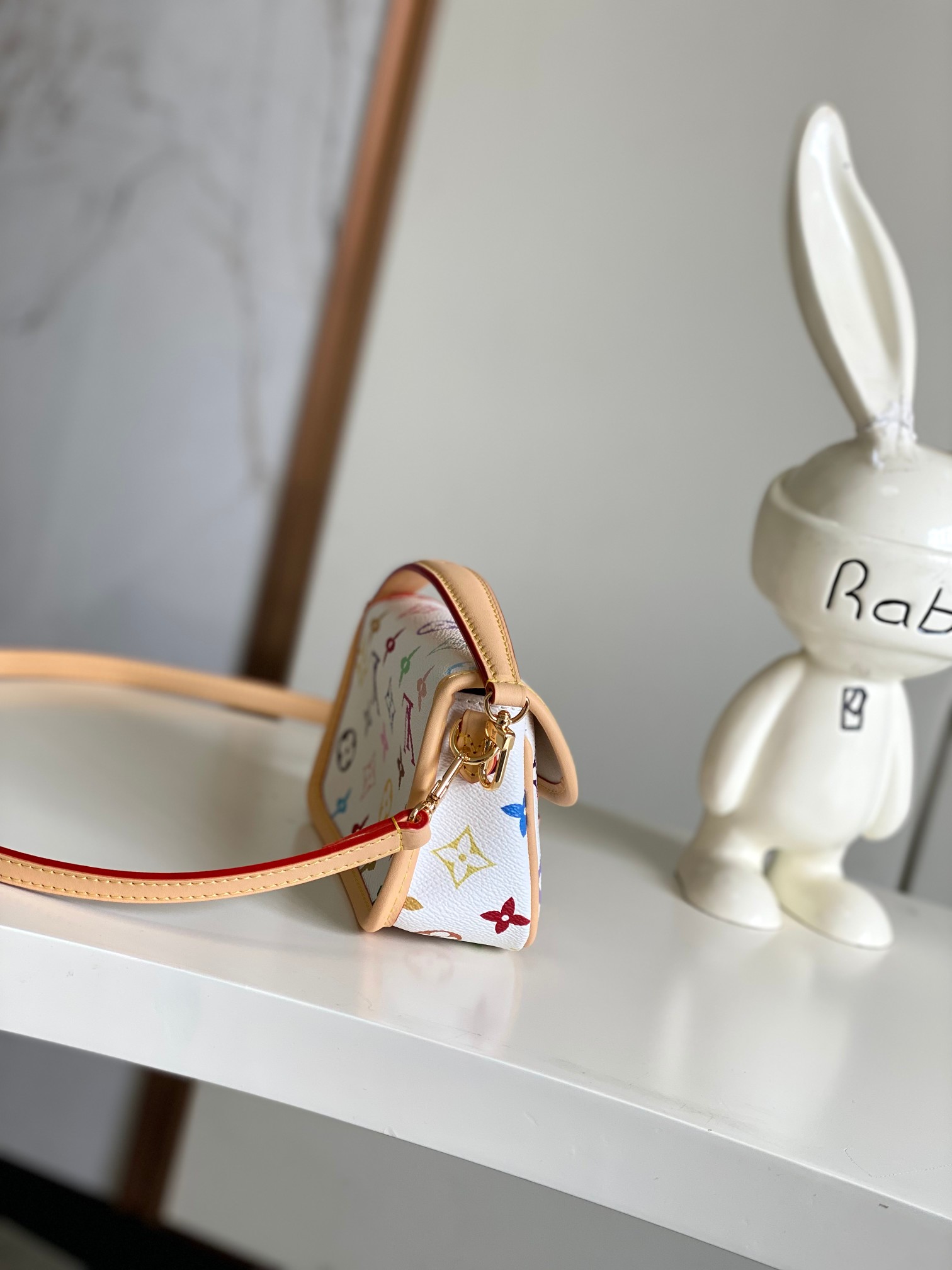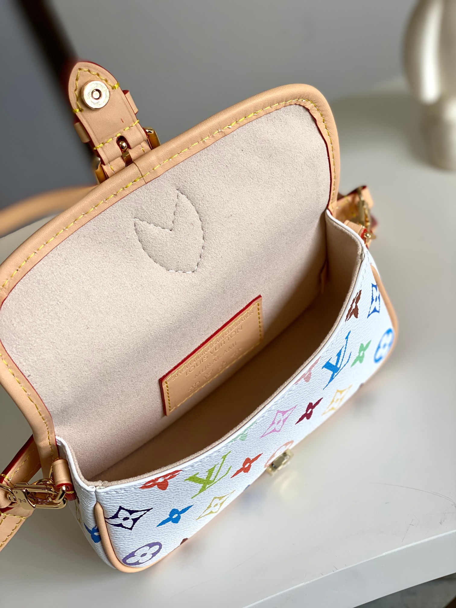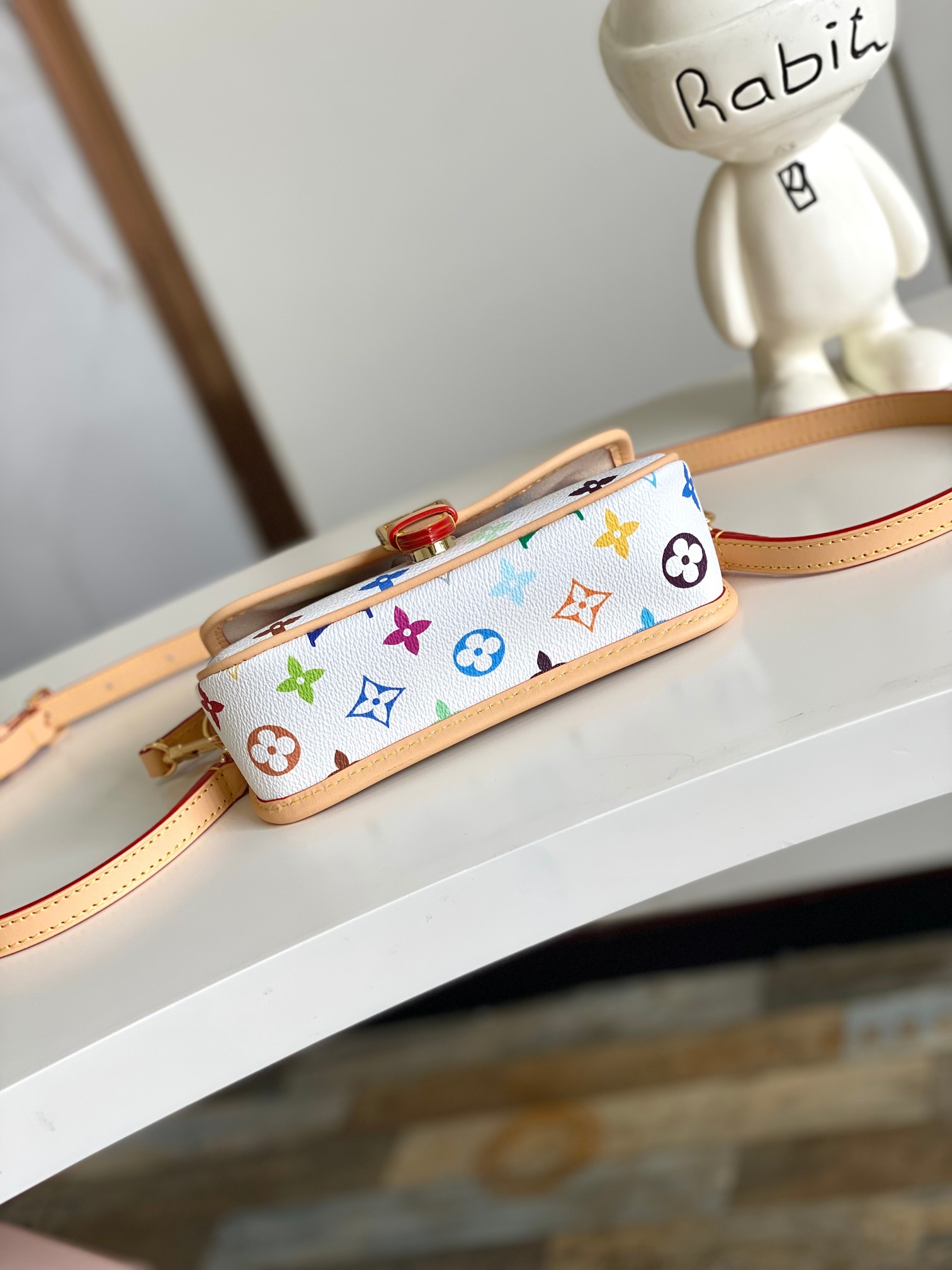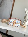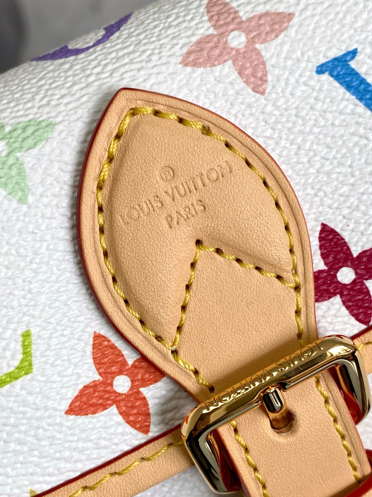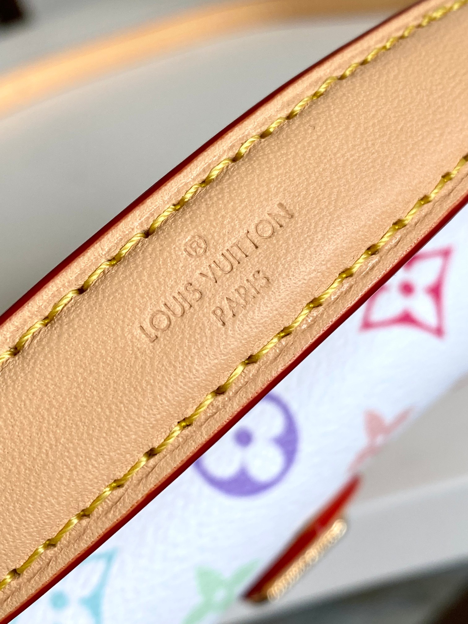The Louis Vuitton x Takashi Murakami All-In BB bag, a popular piece from the Louis Vuitton x Takashi Murakami collaboration with Japanese artist Takashi Murakami, showcases a classic Louis Vuitton design in vibrant white tri-color Monogram coated canvas, striking a perfect balance between luxury and artistry.The bag features a bright white base, emblazoned with vibrant LV monogram and floral logos. The vibrant hues and vivid details showcase Murakami's unique artistic flair. Natural cowhide trim and gold-tone hardware add a touch of vintage sophistication. Its lightweight construction and versatile design, which can be carried by hand or worn over the shoulder, make it both practical and stylish, perfect for everyday travel and on vacation.