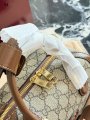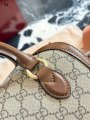 This small travel bag perfectly blends the classic Gucci monogram logo with stylish functionality. Its versatile design and exquisite craftsmanship stand out. Crafted from canvas with Gucci's signature GG monogram print and accented with high-quality leather, it exudes vintage charm while showcasing the elegance of a modern woman. The detachable shoulder strap allows for hand-carry, shoulder-carry, and crossbody carry, offering flexibility for any occasion.