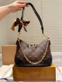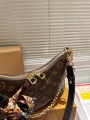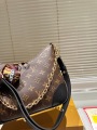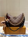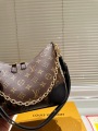This LOUIS VUITTON Boulogne handbag, crafted from the brand's signature Monogram coated canvas with black leather trim, embodies a modern design that blends elegance and practicality. Inspired by vintage underarm bags from the brand's archives, the bag's soft, curved croissant silhouette creates a stylish, three-dimensional effect, showcasing minimalist yet detailed French style.