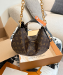 This Louis Vuitton Cookie BB Small Underarm Bag reimagines the classic monogram print with a unique black and brown design, showcasing the brand's signature refined style. A striking metal chain adds a modern touch, creating a stylish and practical look.