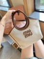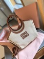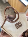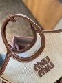 The MIU MIU Miu Miu IVY Collection handbag, with its fresh, natural color scheme and timeless design, embodies an elegant and recognizable modern feminine style. The bag is crafted from textured canvas with cognac leather trim, creating a soft yet layered look that exudes a gentle, vintage feel.