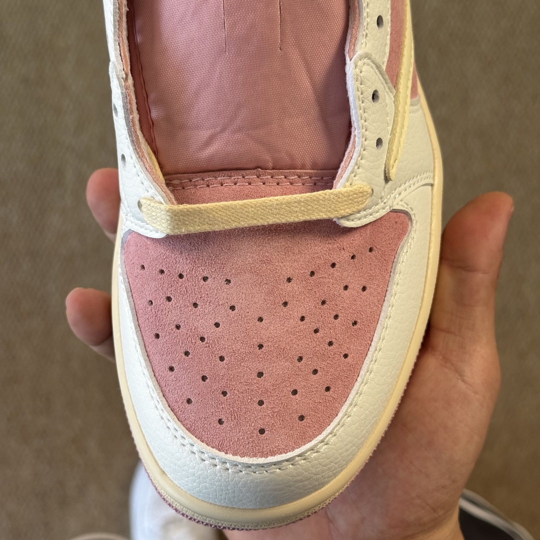A classic in the Air Jordan 1 Low series, the "Hook White and Pink" model has garnered widespread acclaim among sneakerheads and fashionistas with its unique colorway and exquisite craftsmanship. More than just a sneaker, this shoe perfectly blends street style with high-end craftsmanship. Utilizing premium DF-grade top-grain leather and meticulously detailed, it's a top-tier sports and leisure shoe at an exceptional value.