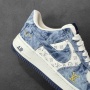 The Nike Air Force 1'07 Low LV Denim Blue is a limited-edition collaboration that blends classic and modern design, showcasing the unique collaboration between Nike and Louis Vuitton. Featuring a distinctive denim blue hue, the shoe combines exquisite materials with high-end fashion elements, embodying a fusion of avant-garde and elegant allure. The upper is crafted from high-quality denim for a comfortable and textured feel, while the natural texture of the denim lends the shoe a streetwear-inspired feel while retaining a luxurious feel. The signature LV graphic and Nike Swoosh embroidery on the upper add a touch of refined luxury. The sole maintains the classic Air Force 1 design, featuring a transparent rubber outsole for a comfortable feel and excellent traction. The midsole's air cushioning provides exceptional comfort and support, making it suitable for everyday wear and extended walks. This denim blue collaboration not only retains the classic look of the Nike Air Force 1, but also adds a touch of style and uniqueness through Louis Vuitton's clever design. Whether paired with streetwear or high-end fashion items, it can be easily controlled and becomes a dazzling choice in the shoe cabinet.