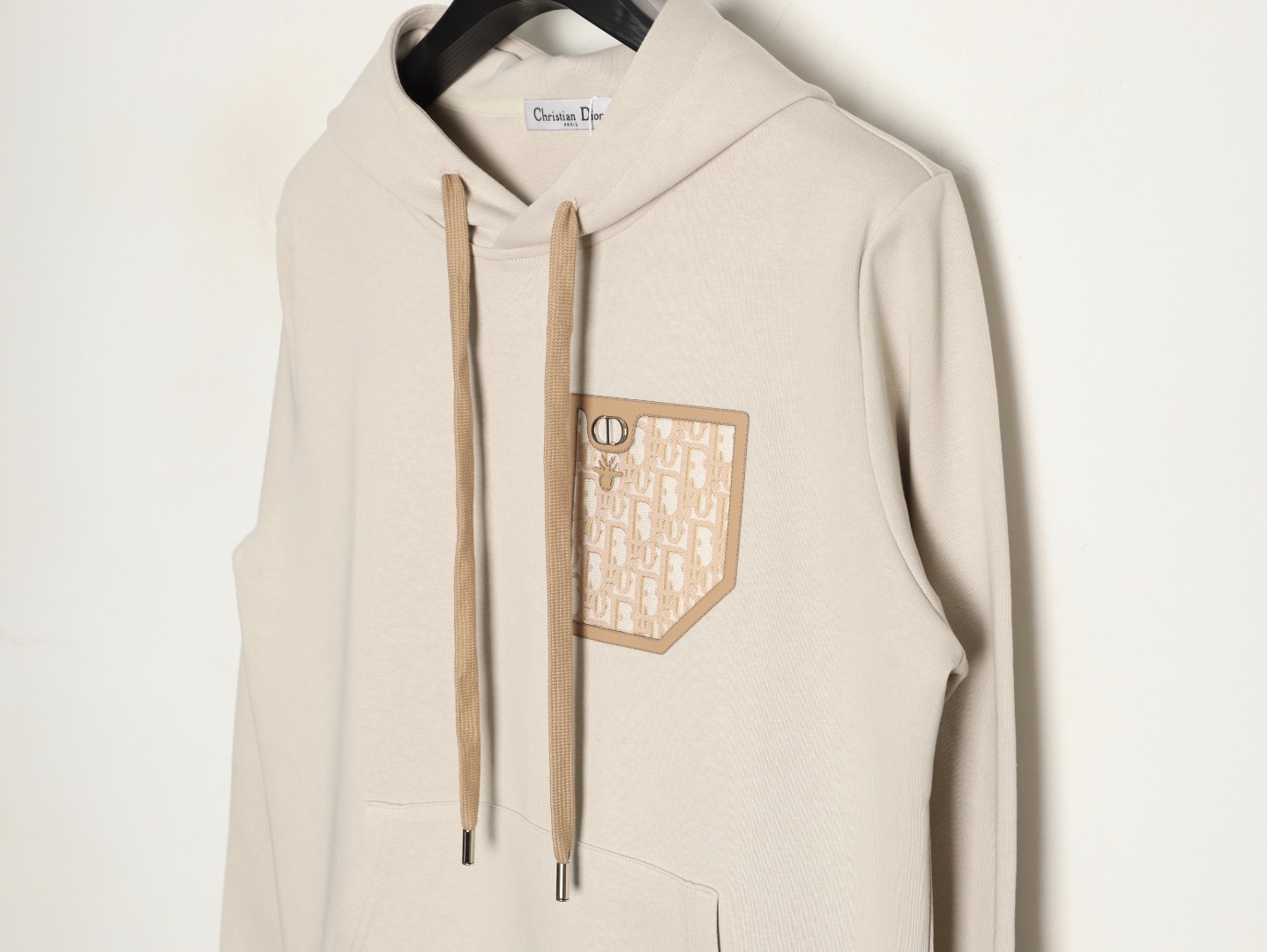 Dior hooded sweatshirt, made of 86% cotton blended fabric, soft and breathable with a sense of crispness, the straight shoulder three-dimensional tailoring gives the body freedom, the thickened cotton lining wraps the warmth, and the oversized three-dimensional slanted pocket design takes into account the casual posture of putting your hands in your pockets and the security of carrying your belongings.