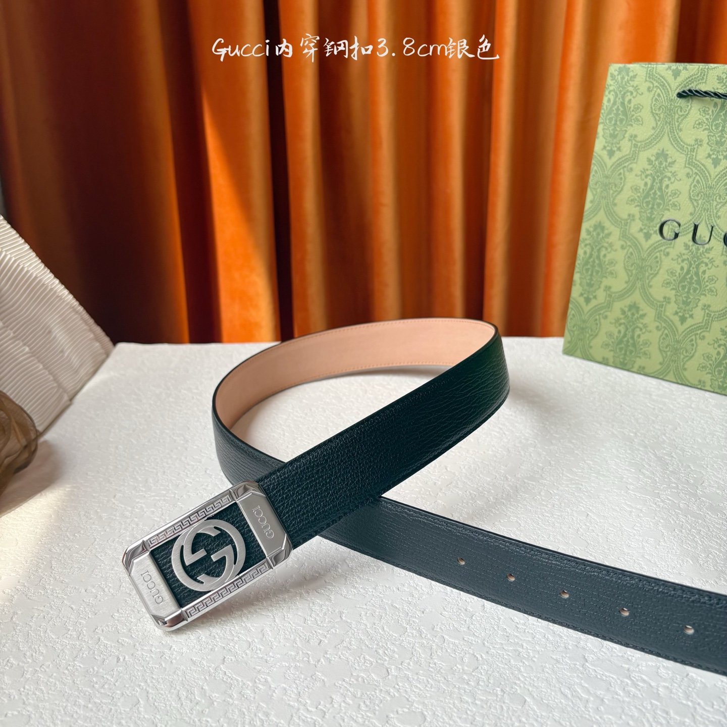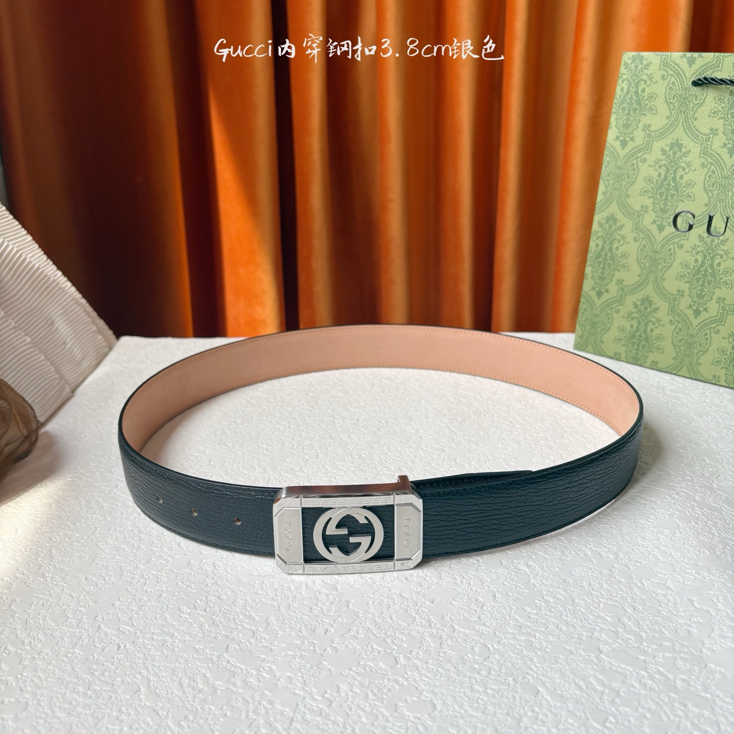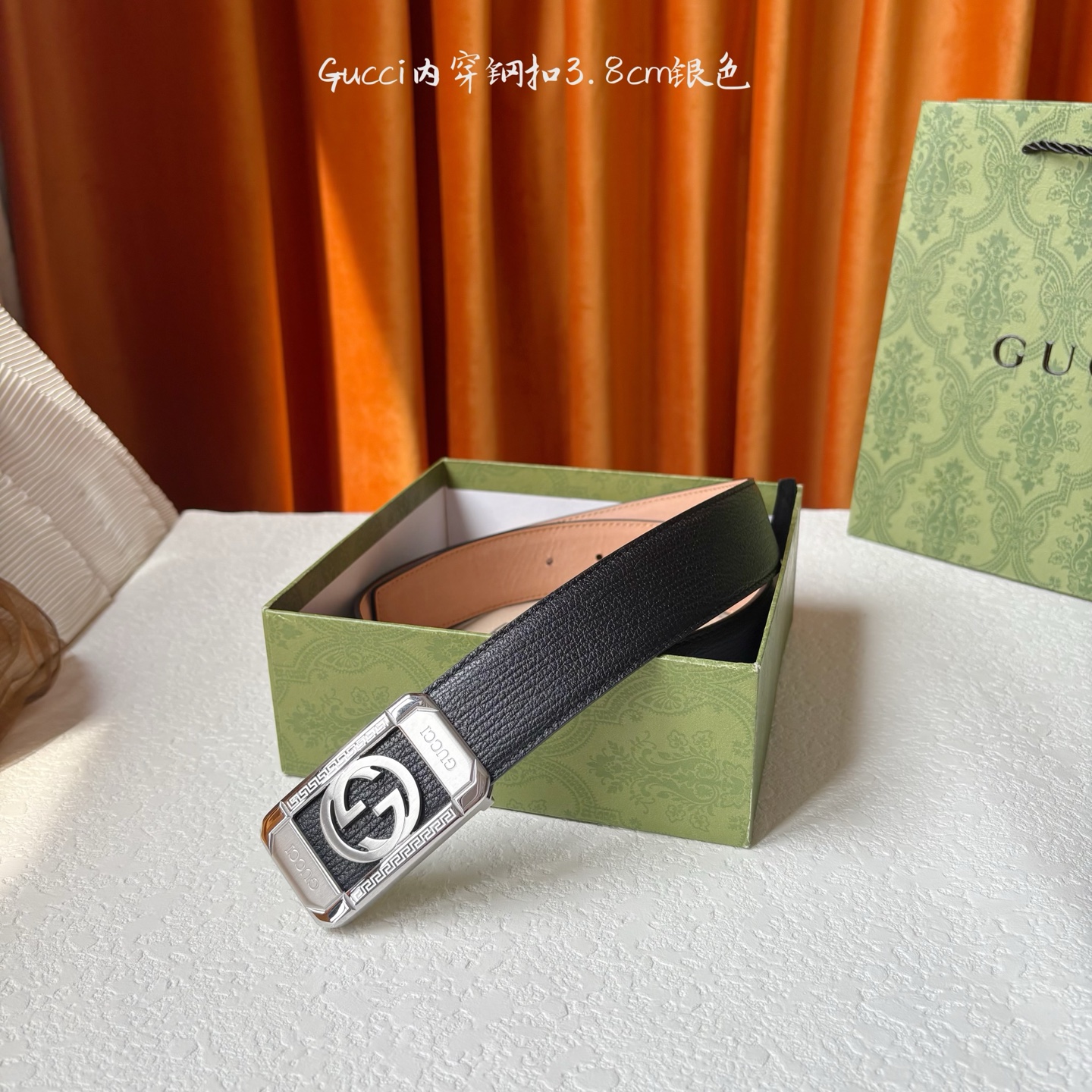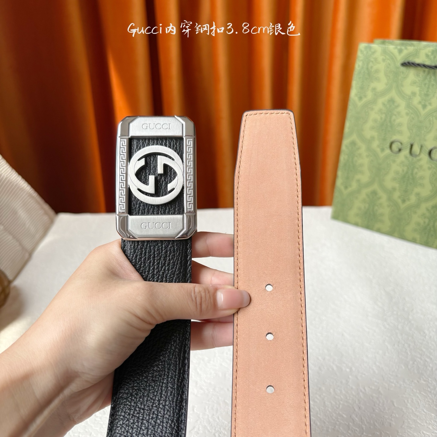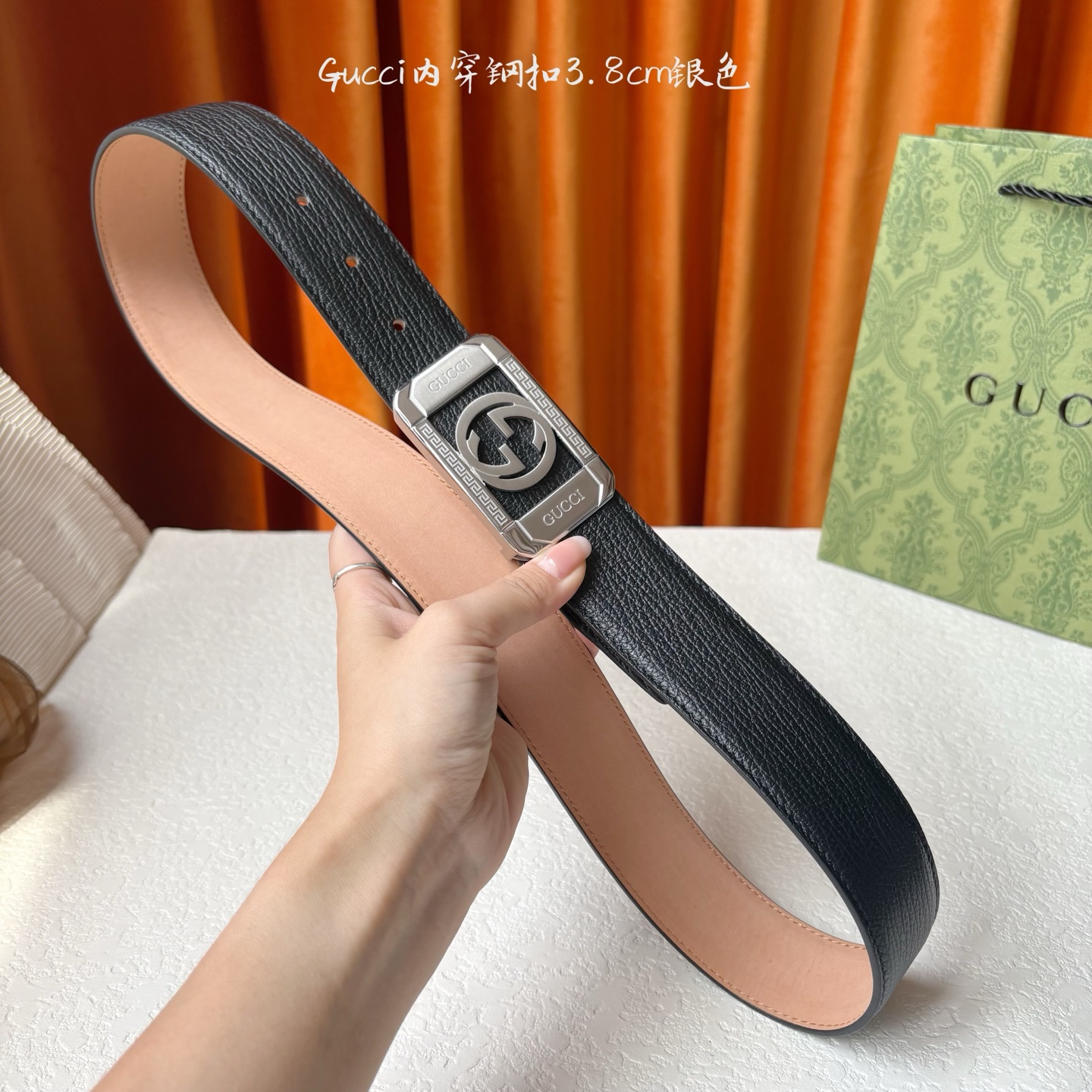 This classic Gucci embossed belt is crafted from custom-made original leather—embossed upper leather with a plain weave base for a refined, layered look. The premium internal steel buckle boasts a high-gloss finish and durability, showcasing Gucci's signature craftsmanship. The detailed textures and hardware are truly boutique-quality.