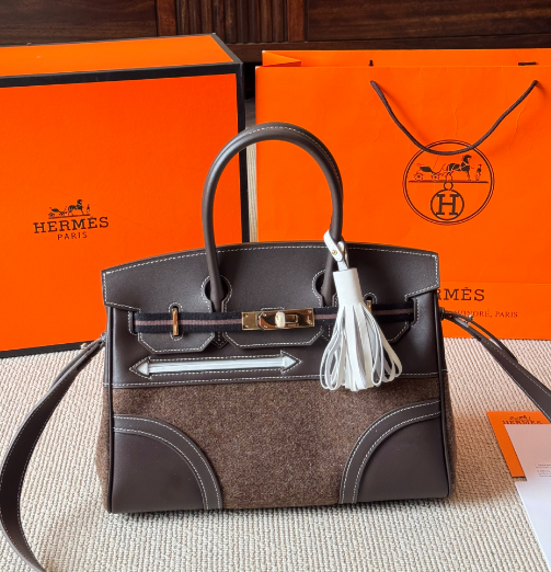 HERMES Birkin Go Team 25 Silver Buckle Wool Felt Swift Leather Birkin Handbag Women's Nior
