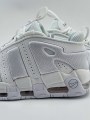 The "MORE AIR" lettering on the side of the shoe is a signature element of this shoe. The large, three-dimensional "AIR" lettering continues the classic Uptempo style, creating a striking and eye-catching design. This design not only reflects the history of the sneaker but also highlights the shoe's individuality and design. The overall design is bold and avant-garde, brimming with streetwear chic.